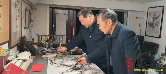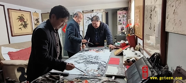 四位艺术家台儿庄墨香斋共绘《四友迎春图》 以笔寄情赞家乡之美(图)