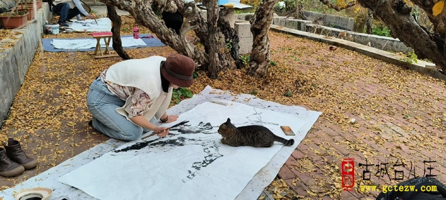 冠世榴园写生遇萌猫:褚福波11.14石榴创作添趣(图)