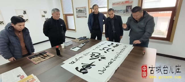 刘同林 摄影12月19日,为更好推进在台儿庄投资的军创园项目建设,从台儿庄的红色根脉中挖掘精神养分,为项目植入红色抗战的精神内核,商健投资(山东)有限公司董事长、山东省健康商会荣誉会长、济南市书法家协会副主席丁磊前往台儿庄档案馆参观调研。台儿庄区委宣传部副部长、区融媒体中心主任章华,台儿庄档案馆副馆长黄河、七级职员孙晋华、名誉馆长刘同林陪同。