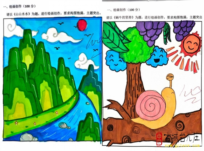 为精准考察不同学段学生的美术核心素养,学校依据各年级年龄特点与教学目标,量身定制了专属创作主题。一年级小萌娃聚焦《蜗牛的坚持》,用稚嫩的笔触勾勒出形态各异的小蜗牛,斑斓的壳纹、努力爬行的姿态,满是童真与天马行空的想象力;二年级同学化身“校园小导游”,将教学楼、操场、花坛等熟悉景致跃然纸上,一笔一画间流淌着对校园的热爱与眷恋;三年级孩子紧扣《幸福一家亲》主题,以温暖的色彩定格家人相处的温馨瞬间,字里行间传递出浓浓的亲情暖意;四年级学生变身“汽车设计师”,大胆畅想未来座驾,酷炫的造型、环保的功能设计,在画纸上构建出一个个充满创意的汽车王国;五年级以《元宵节里挂彩灯》为题,笔下的灯笼或传统雅致、或新潮灵动,色彩明艳的画面中满溢着浓浓的节日氛围;六年级学生则以《山山水水》为题,泼墨点染间尽显扎实功底,远山含黛、近水含烟的山水小品,意境悠远、韵味十足。