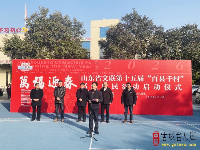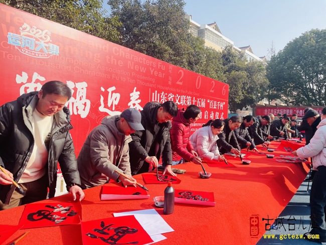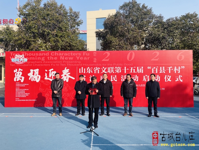 2026年1月15日上午,万福迎春—山东省文联新时代文明实践第十五届“百县千村”书法惠民活动枣庄市分会场启动仪式在枣庄市台儿庄区运河街道华阳社区居委会顺利举行。参加启动仪式的领导有枣庄市文学艺术界联合会党组书记、主席李景龙,枣庄市文联党组成员、市文艺事业发展中心主任甘真 ,枣庄市文联党组成员、副主席,枣庄市文艺志愿者协会主席张灿森,山东省书法家协会理事、枣庄市书法家协会主席马德田,台儿庄区运河街道党工委副书记、运河街道办事处主任姜伟,枣庄市书法家协会副主席、台儿庄区书法家协会主席刘光,枣庄市书法家协会副秘书长刘云鹏,台儿庄区书法家协会副主席兼秘书长姚威,副主席李浩、栗广信、朱麒睿、贺敬涛、王恒、栗先腾,台儿庄书协副秘书长范安楠,以及群众当地群众共计500余人,参加活动,台儿庄区委宣传部四级调研员李楠主持。
