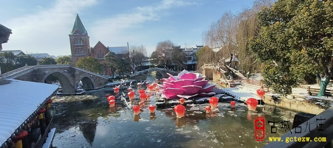 从“天下第一庄”的繁华过往,到台儿庄大战的英雄荣光,再到如今运河文化与民俗风情交融的鲜活模样,雪后的台儿庄古城,以花灯为媒,以白雪为幕,将水乡之美、历史之韵、英雄之魂完美融合。这道雪后的花灯风景线,不仅让游客领略到江北水乡的冬日魅力,更让台儿庄的文化底蕴在光影与雪色中静静流淌,成为这个冬日里不可错过的文旅盛景。