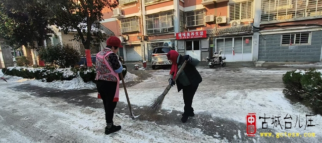 此次清雪除冰行动,是台儿庄邻里互助、共克时艰的生动写照。台儿庄老街人与阳光家园居民心往一处想、劲往一处使,用实干与汗水诠释了邻里情深,不仅扫出了保障出行的平安路,更铺就了守望相助的和谐路。这一抹抹忙碌的身影,成为皑皑白雪中最动人的风景线,也让“奉献、友爱、互助”的精神在台儿庄大地熠熠生辉。