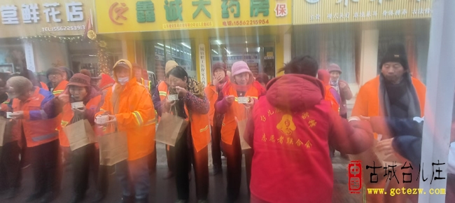 “腊八节的粥暖的是胃,学雷锋的爱暖的是心。”活动组织者、区学雷锋志愿者联合会会长张礼春表示,雷锋精神不仅是志愿者的坚守,更凝聚着全社会的向善力量。此次活动中,本地企业主动参与、慷慨助力,让志愿行动更有力度、更有温度,也让雷锋精神在政企联动、全民参与中薪火相传。据悉,当日活动共为100余名群众送上腊八粥及爱心物资,大药房累计赠送春联和消毒液大礼包50余个,眼镜店为50余名环卫工人免费配赠老花镜,便民服务惠及近千余人次。雨雾中的“志愿红”与企业爱心身影交相辉映,不仅温暖了一座城,更让雷锋精神在台儿庄大地上深深扎根,让传统佳节因奉献而更具底蕴,因大爱而更显厚重。