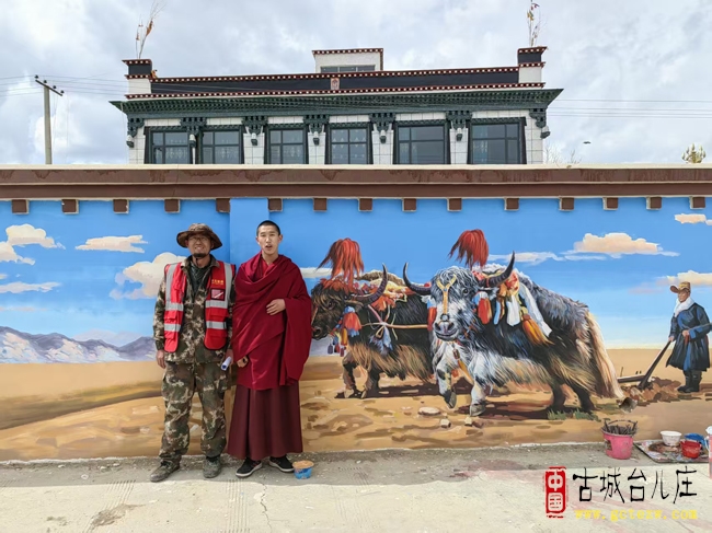 作为台儿庄人,孙腾龙曾研修于中国美术学院,扎实的专业功底为其创作打下坚实基础。此次西藏之行,他将写生阵地搬到藏地街头,潜心创作了多幅墙绘作品,画面中既有雪域高原标志性的牦牛形象,也有生动鲜活的藏区人物,一笔一画皆勾勒出藏地的自然风貌与人文风情。谈及创作初衷,孙腾龙表示,希望以自己的微薄之力,用画笔定格西藏的美好山河,让更多人领略藏地的独特景致。