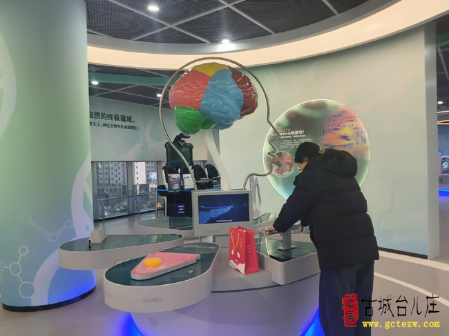 拾级而上,二楼展区聚焦台儿庄产业创新发展历程,以机械、纺织等五大主导产业为核心,通过实物展示、场景复原与互动体验,全景再现了台儿庄从传统工业向现代化产业转型的奋进轨迹。与此同时,“探索人类大脑奥秘”“理解自然疆土”等展区,将科学知识与生活应用深度结合,而“通联世界”“飞行影院”等沉浸式场景,更让参观者仿佛穿越时空、遨游天地,在震撼的视听体验中感受科技改变世界的强大力量。三楼的“探海寻天”展厅同样亮点纷呈,从海底牧场到太阳系模型,从天眼FAST到天河核心舱,再到微观奇景中的DNA探秘与量子世界,全方位解锁前沿科技奥秘,满足不同年龄段参观者的探索欲。