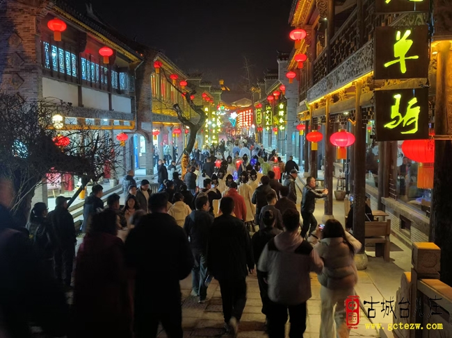 同林摄影: 2月14日晚,浪漫情人节与浓浓新春年味撞个满怀,台儿庄古城内处处流光溢彩、人潮流动、人流如织,浪漫相会与新春烟火交织,节日氛围浓郁热烈。