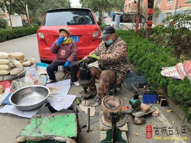 在台儿庄,大家口中的“炸炸”“炸米花”,正是这门老手艺。黑铁炉、手摇锅、布袋接料,这台炸花机可炸大米、玉米、小麦,也能做糖豆、花生米等传统小食,是几代人心中最地道的街头美味。炉火转动间,谷物膨化成酥脆米花,渔歌酒香、水乡烟火仿佛都凝在这一口香甜里。
