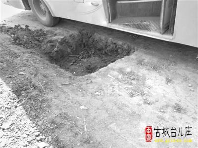 台儿庄区文化东路因道路施工封闭以后,台儿庄至江苏邳州的客运车辆大都选择绕路,然而最近一段时间,个别村民在客车经过道路上挖了一个大坑,致使客车无法通过,客车司机对此也颇感无奈。