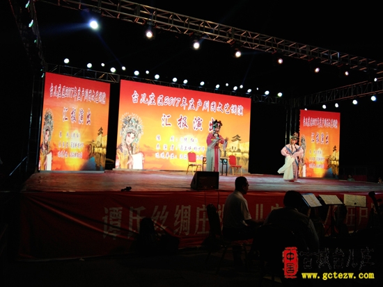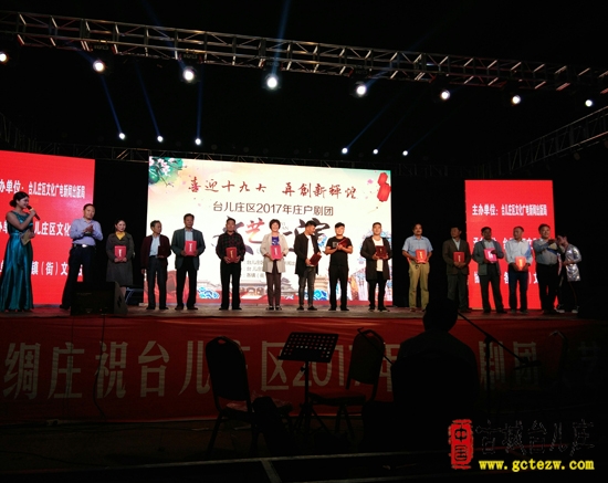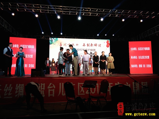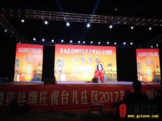 9月30日晚七点半,由区文广新局主办、区文化馆承办各镇(街)文化站协办的台儿庄区2017年庄户剧团文艺汇演,在府前广场举行,为群众献上了一道精彩的文艺大餐。 文艺汇演在器乐合奏《祭贤宾》中拉开序幕。接着,歌曲、琴书、小品、唢呐独奏、柳琴戏、二人转等节目轮番上场,赢得了在场观众的热烈掌声。其中,柳琴戏《懒大嫂赶会》,倡导人们发扬勤劳文明的优良美德,充分展现了社区居民健康向上的精神风貌。小品《八宝粥》提倡人们孝顺老人发扬中华民族的传统美德。舞蹈《中国梦》演员们精彩的表演,动人的舞姿让人们对美好明天充满希望。 此次庄户剧团文艺汇演团体全部是由今年全区庄户剧团调演选拔出的优秀团体,此次汇演将为文化惠民工程“一年一村一场戏”选拔出更加优秀团体,优质节目,为我区文化大发展、大繁荣起到积极的带动作用。