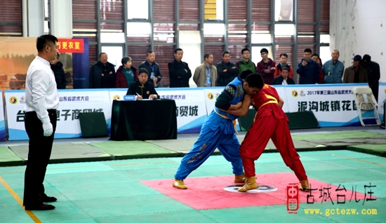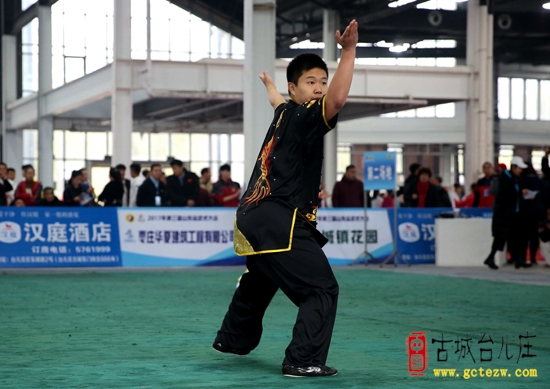嘿!哈!吼!古城西门外展厅里不时传出呐喊声,厅内人头攒动,厅外排满人,他们身穿各种传统武术服装,正练习着不同的招式。原来,这里是2017年第三届山东省武术大会的比赛现场。 (古城台儿庄网要闻部编辑)