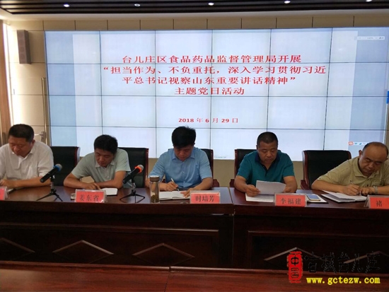台儿庄区食品药品监督管理局开展“担当作为、不负重托,深入学习贯彻习近平总书记视察山东重要讲话精神”主题党日活动(图)