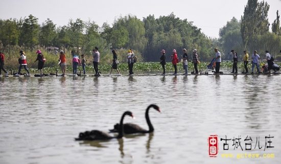 10月5日,位于京杭大运河畔的山东省台儿庄运河湿地双龙湖观鸟园,吸引了来自全国各地的游客,他们漫步在观光栈道赏群鸟嬉戏,或乘坐脚踏船与天鹅同乐,在这里度过了一个欢乐而又惬意的国庆节。(孔闯) (古城台儿庄网要闻部编辑)