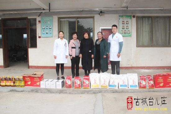 演出还没有结束,北京同仁堂台儿庄药店店长魏英女士带领员工,给老人们送来了面粉、大米、食用油、水果等,并亲自分发给他们,祝老人们重阳节快乐。魏英女士表示,今后将会经常到敬老院、社区给老人们健康查体,传播健康常识。