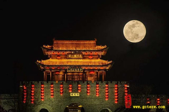 亭台楼阁间,牌坊飞檐间 欣赏别具情调的超级月亮 共同寻觅“千里共婵娟”的诗意
