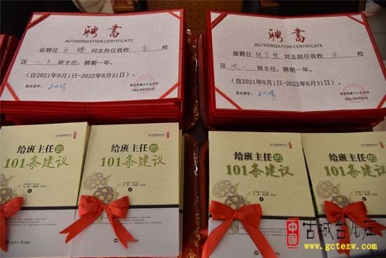 首先党总支书记、校长王明琦同志致辞。他代表学校对全体班主任致以最热烈的祝贺和最真诚的感谢!他说:“班主任是付出最多和最有爱心的人!这个岗位饱含着太多的尊重与关怀、理解与宽容。用自己的付出和担当,换得学校的发展与壮大,用自己的心血和汗水,换得学生的成长与成材。班主任心怀大爱,滋润着学生的幼嫩心田,温暖着学生的人生旅程,丰富着学生的精神世界,净化着学生的心灵。班主任虽没有气冲霄汉的豪言壮语,只有琐碎的平凡。班主任节不仅仅是向老师送上一束鲜花、不仅仅是向老师说几句感激的话语、也不仅仅是微薄的礼物。班主任节是一种纪念,让每个学生记住成长路上的伴随者,感念班主任一路上对学生的关心与呵护;班主任节是一份祝福,是学校、同事、学生和学生家长对全体班主任的真诚祝愿;班主任节也是一份期待,是学校对育人规格和质量的殷切期待。希望全体班主任老师以班主任节为契机,将良好的修养、崇高的境界、高尚的人格与班主任无私的关爱、仁慈的宽容、坚定的执着相融合,努力在教育这个大舞台上、在三十九中这个大家庭中,演奏出更加美妙的华章。” 少先队员代表深情朗诵献词,表达对班主任老师崇高人格、率先垂范的赞美之情。 班主任老师们逐一上台,副书记贾传武,副校长于邑、孙晋斌分别为班主任老师颁发聘书、赠送礼品。 同学们用一首满含深情的手语合唱《感恩的心》,表达自己对班主任老师的感恩之情。 接着,德育处主任鹿守太宣读《枣庄市第三十九中学关于命名星级班主任的规定》,并公布2021年晋星班主任名单,张菁等10人晋一星班主任、刘晓宇等4人晋二星班主任、赵全启等4人晋三星班主任。王明琦为晋星班主任颁发聘书并授予星牌 。 庆典活动在合唱《长大后我就成了你》中推向高潮。 班主任代表赵彦宏从对班主任工作的体会、班级管理工作点滴等方面作了交流发言。 舞蹈社团的学生们用曼妙的舞姿为班主任老师们呈现了一支古典舞,展现中华文化的古典韵味。