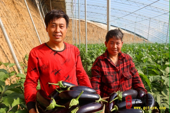 “以前,我在上海跑长途,远离亲人,收入也不高;现在,我留在家人身边,现在种了4个大棚,一年保守收入十几万,还能带动父老乡亲一起发展。这条路,选对了!”在赵圩子村的茄子基地大棚里,致富带头人孔令国喜笑颜开,向大家展示基地培育出的优质茄子。