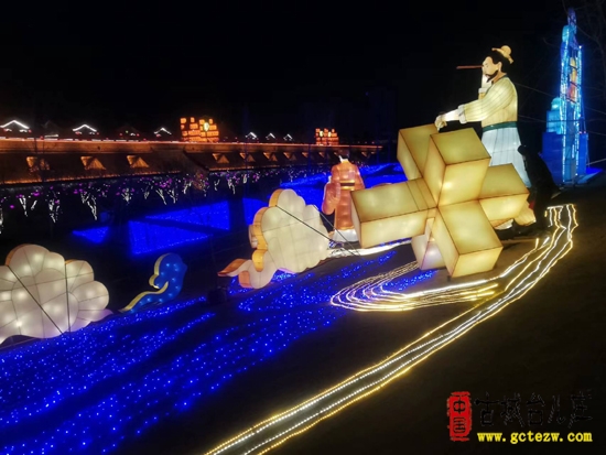 台儿庄古城花灯以造车鼻祖奚仲,工匠祖师鲁班,中华科圣墨子,北方锂电之都为主题元素,展现了枣庄北方锂电之都金名片……