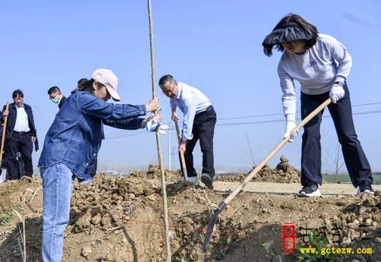 台儿庄:区领导参加义务植树活动(图)春光无限好,植树正当时。