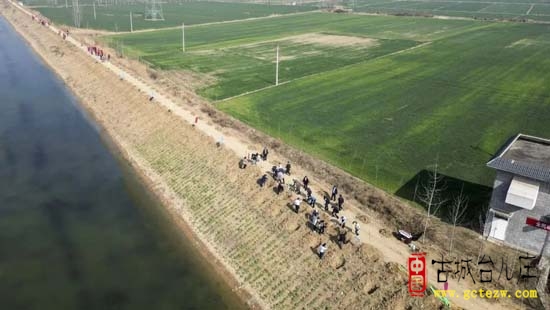 在植树现场,大家干劲十足,分工协作,挥锹铲土、扶树稳苗、培土围堰、提水浇灌,合力种下一棵棵树苗,现场一派热火朝天的繁忙景象。经过一番劳动,1000余棵无絮杨昂然挺立,焕发出勃勃生机,为北洛截水沟增添了盎然春意。