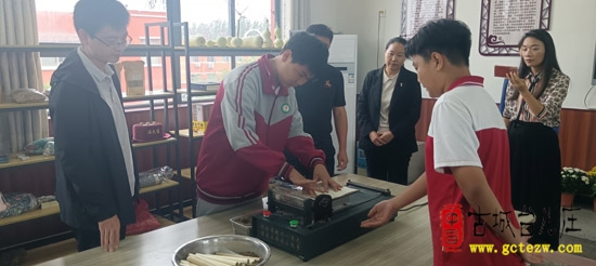 在学校中医药文化长廊和文化馆,各位领导查看了学校中医药知识宣传作品和中草药陈列展示橱窗,观看了学校精心制作的宣传片——《中华医药进校园》。几名中学生为来宾们现场演示了中药材快速识别,香囊和艾条加工等中草药相关知识技能。