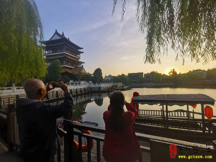 刘同林摄影:10月5日晨曦中的台儿庄古城,来自河南、吉林,青岛游客相约最美的水城,畅游活着的古运河,中国民居建筑博物馆。