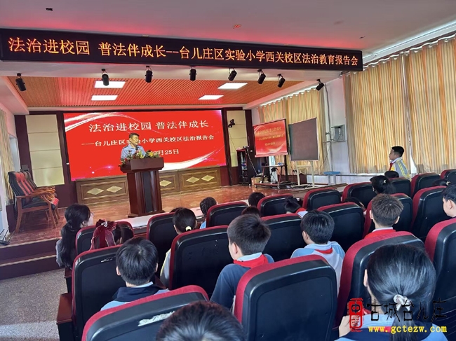 法治进校园 普法伴成长丨台儿庄区实验小学西关校区开展法治教育报告会(图)(夏兰 李佩萱报道) 为进一步加强青少年法治教育,提升学生的法治意识和自我保护能力,台儿庄区实验小学西关校区法治副校长陶飞同志在学校报告厅开展“法治进校园 普法伴成长”法治教育报告会。 陶校长具备深厚法律专业知识和丰富实践经验,他结合生动具体的案例,用通俗易懂的语言,深入浅出地讲解了与学生们日常学习生活密切相关的法律知识,有效指导同学们如何做到知法、懂法、守法、用法,使在场师生受益匪浅。活动最后向全体师生发出倡议,希望大家将法治观念内化于心、外化于行,从我做起,从身边小事做起,自觉遵守法律法规和校规校纪,共同维护平安、和谐、稳定的校园环境。 此次活动是学校深化法治教育工作、护航学生健康成长的有力实践。我们将以此次活动为新的起点,不断巩固和扩大法治教育成果,努力培养知法、懂法、守法、用法的新时代合格公民,为学生的健康成长保驾护航,为法治社会建设贡献力量。 (古城台儿庄网要闻部编辑) 上一篇:台儿庄区实验小学西关校区“正心正姿迎国庆 常规舞动展风采”…[ 10-01 ]下一篇:没有了!