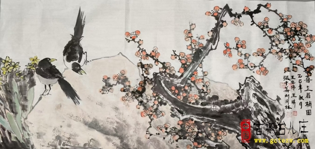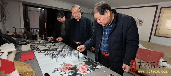 四位艺术家台儿庄墨香斋共绘《四友迎春图》 以笔寄情赞家乡之美(图)