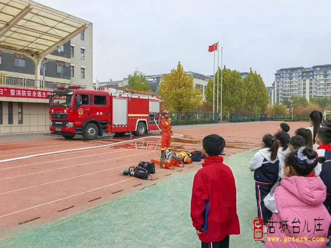 台儿庄古城学校、台儿庄区消防大队举行联合消防安全教育及应急疏散灭火演练活动(图)
