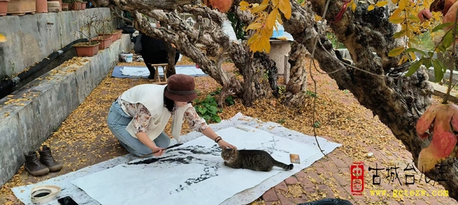 冠世榴园写生遇萌猫:褚福波11.14石榴创作添趣(图)
