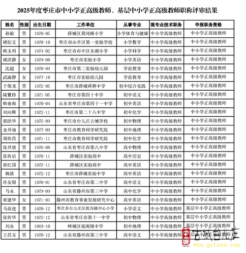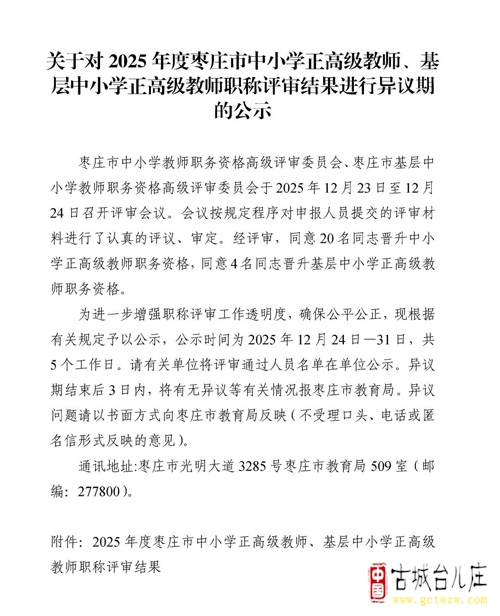 【公示】2025年度枣庄市中小学正高级教师、基层中小学正高级教师职称评审结果