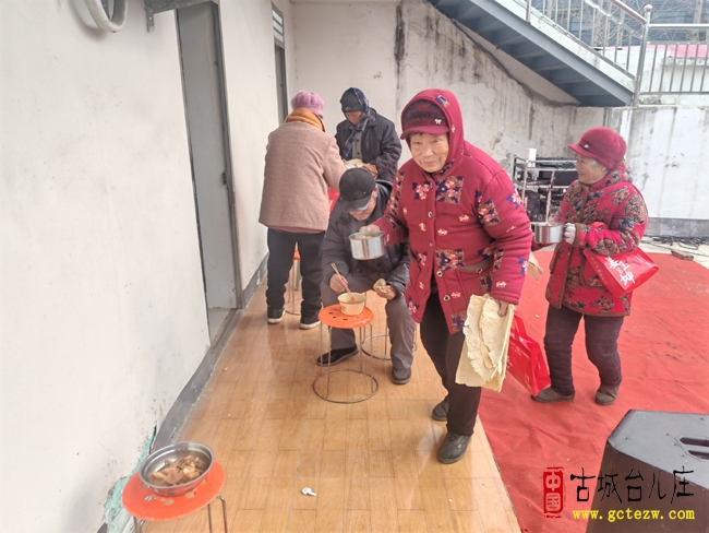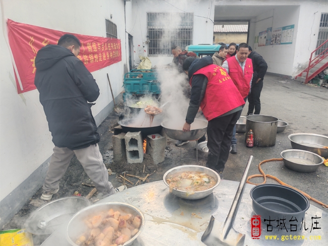 最是人间烟火气,温暖岁末返乡人。新媒体联盟和兴运市场的志愿者们在广场一角搭起了临时灶台,网红“伊家河”“学昆”“兰祺王局长”等亲自上阵,洗菜、切菜、炖肉分工协作,一丝不苟。炉火熊熊燃烧,锅里的“萝卜鸡”“白菜肉”咕嘟作响,鲜香气息弥漫在整个广场。志愿者们将一碗碗热气腾腾的菜肴送到村民手中,暖心暖胃的美食让这个寒冬充满了温情。