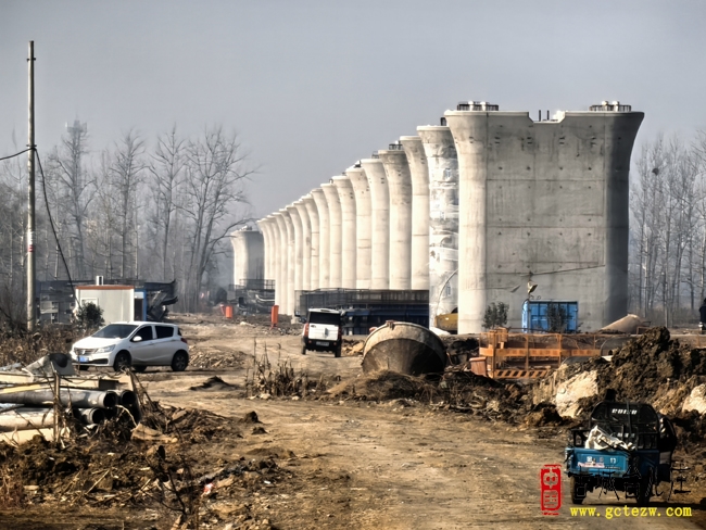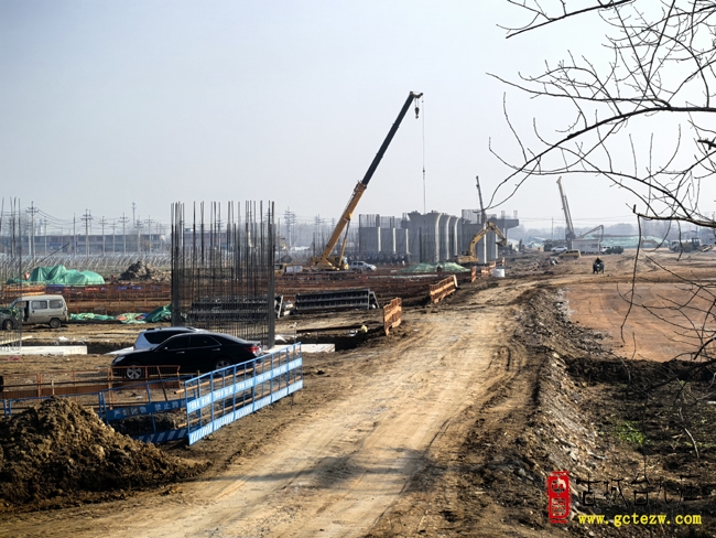 (杨成骏图文报道)济枣高铁台儿庄站建设现场一派热火朝天,机器轰隆作响,工程人员专注施工,一根根高架立柱巍然矗立,项目正按计划稳步推进。