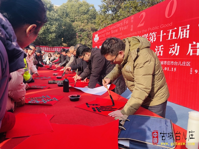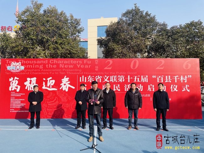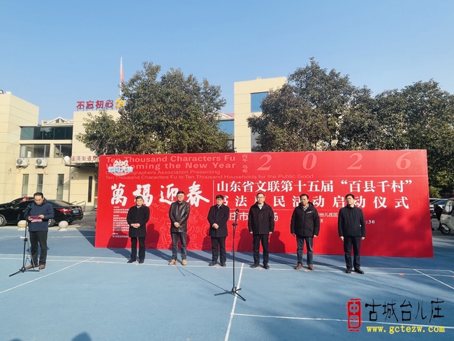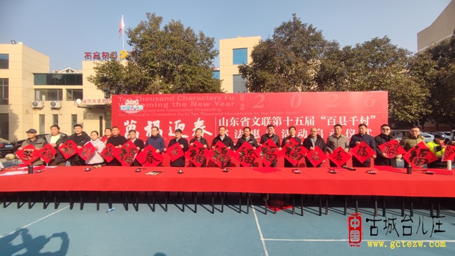2026年1月15日上午,万福迎春—山东省文联新时代文明实践第十五届“百县千村”书法惠民活动枣庄市分会场启动仪式在枣庄市台儿庄区运河街道华阳社区居委会顺利举行。参加启动仪式的领导有枣庄市文学艺术界联合会党组书记、主席李景龙,枣庄市文联党组成员、市文艺事业发展中心主任甘真 ,枣庄市文联党组成员、副主席,枣庄市文艺志愿者协会主席张灿森,山东省书法家协会理事、枣庄市书法家协会主席马德田,台儿庄区运河街道党工委副书记、运河街道办事处主任姜伟,枣庄市书法家协会副主席、台儿庄区书法家协会主席刘光,枣庄市书法家协会副秘书长刘云鹏,台儿庄区书法家协会副主席兼秘书长姚威,副主席李浩、栗广信、朱麒睿、贺敬涛、王恒、栗先腾,台儿庄书协副秘书长范安楠,以及群众当地群众共计500余人,参加活动,台儿庄区委宣传部四级调研员李楠主持。
