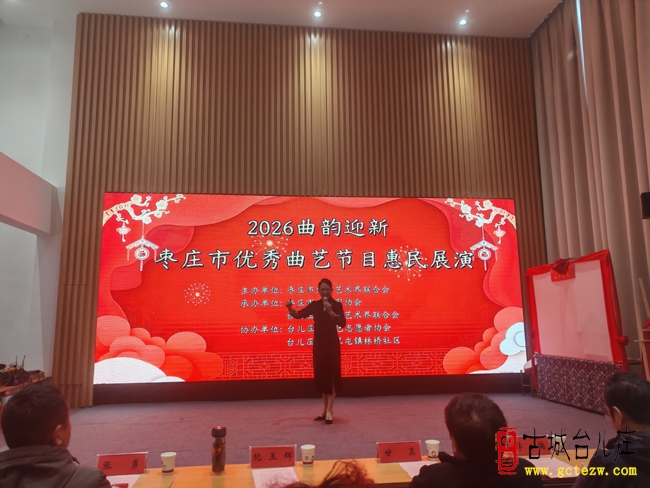 (侯凤娟 杜娟 贾继伟报道)1月16日,由枣庄市文联主办,枣庄市曲艺家协会、台儿庄区文联承办,区文艺志愿者协会、马兰屯镇林桥社区协办的2026“曲韵迎新”枣庄市优秀曲艺节目惠民展演,在林桥社区二楼大厅热闹开演。市文联党组成员、文艺事业发展中心主任甘真,台儿庄区委宣传部四级调研员李楠,区文艺志愿者协会名誉会长侯凤娟,市曲艺家协会主席王超,台儿庄区文化馆业务馆长张勇及相关领导,马兰屯镇及林桥社区相关领导与近百名群众欢聚一堂,共赏曲艺盛宴。