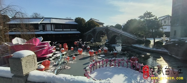 从“天下第一庄”的繁华过往,到台儿庄大战的英雄荣光,再到如今运河文化与民俗风情交融的鲜活模样,雪后的台儿庄古城,以花灯为媒,以白雪为幕,将水乡之美、历史之韵、英雄之魂完美融合。这道雪后的花灯风景线,不仅让游客领略到江北水乡的冬日魅力,更让台儿庄的文化底蕴在光影与雪色中静静流淌,成为这个冬日里不可错过的文旅盛景。