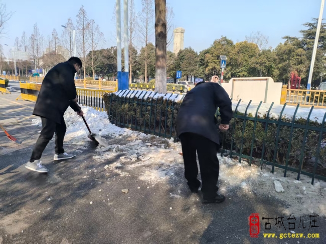 刘同林摄影:1月23日,台儿庄区实验幼儿院门前,一场暖心的清雪除冰行动正有序开展。台儿庄区学雷锋志愿者联合会会员张宏牵头组织,联合台儿庄区城管执法人员,共同对校园门前道路的残留积雪进行全面清理,为师生出行扫清路滑隐患,筑牢校园周边安全防线。