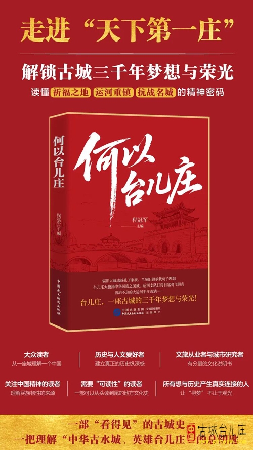 作为中华文明演进的缩影,台儿庄的历史层叠丰富,有“天下第一庄”之称。《何以台儿庄》上溯其上古祈福之地、偪阳古国旧疆的渊源,下及大运河孕育的商贸繁荣,再到民族危亡之际的抗战荣光,将文明萌芽、国家更迭、民族抗争与精神延续的宏大叙事,浓缩于一座城的沧桑变迁中。读者通过本书,既能与三千年民族记忆展开跨越时空的对话,也能读懂历史对当下与未来的深层塑造。 全书以大量生动细节还原 “天下第一庄” 的真实面貌:史前象牙化石见证远古文明踪迹,运河船帮兴衰映照商贸格局变迁,街巷水系与市井烟火勾勒城镇日常,战火岁月铸就民族记忆坐标。从史前文明到古国兴替,从运河商埠到新时代江北水乡,书中不仅回答了台儿庄“发生过什么”,更解读 “为何会如此”,让读者触摸到城市的温度与质感。 在文化注解层面,本书兼顾思想传承与精神内核:以荀子治兰陵为代表的治世理想,构成绵延千年的文化底色;台儿庄大捷彰显的民族血性,成为近代精神史上的重要坐标。二者交织塑造的城市品格,为探访 “中华古水城、英雄台儿庄” 提供了深度支撑,适用于文化研究、文旅展示等多重场景。 该书兼具学术价值与大众可读性,在严谨考据基础上,融入人物故事、生活场景与民间记忆,实现考古发现与历史传承并重、史家之思与百姓烟火交织。图文并茂的呈现形式,既可为研究者提供参考,也适合普通读者沉浸式阅读。 书中将学术考据与人文故事相结合,让枯燥的历史变得可感可触,既解答了台儿庄为何能成为精神地标的深层疑问,也为当下古城文化建设提供了历史镜鉴。(文/北京青年报记者 张嘉) (古城台儿庄网要闻部编辑) 上一篇:台儿庄:“弘扬红色文化 讲好红色故事”视频脚本征稿启事[ 02-02 ]下一篇:墨香迎新春 丹青绘华章丨台儿庄阳光家园墨香斋迎新春笔会(图)[ 02-02 ]