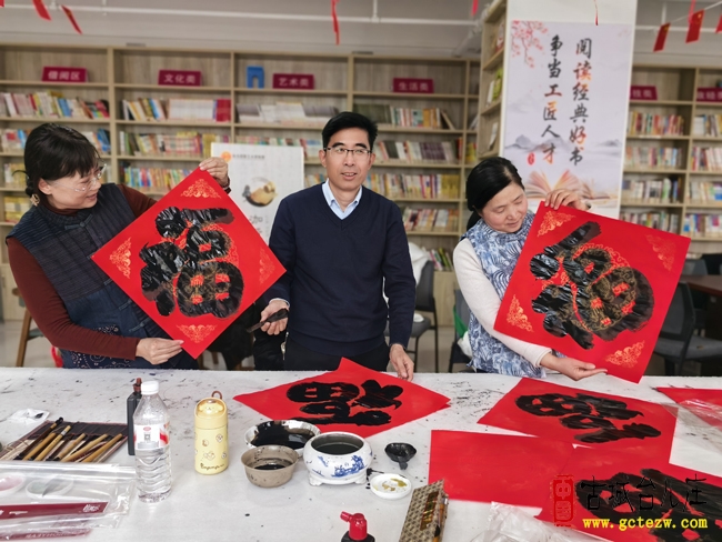 课堂上,授课老师聚焦水仙绘画技法,从笔墨晕染到形态勾勒,细致讲授并手把手指导学员打磨技艺,助力大家夯实国画功底;课程尾声,全体授课书画老师与学员同台挥毫,凝神落笔间,一幅幅寓意吉祥的春联、一个个遒劲喜庆的“福”字跃然纸上,现场墨香袅袅、暖意融融,尽显传统文化魅力与师生情谊。