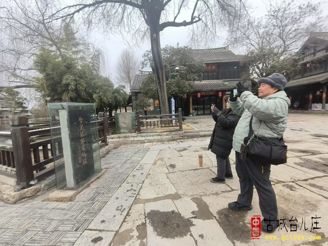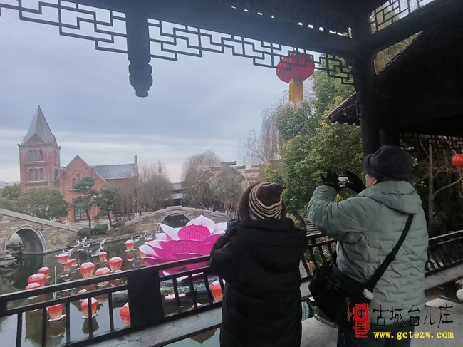 刘同林摄影:2月16日,来自台湾台东的郑先生夫妇走进山东台儿庄古城,与大陆友人同游古城、共赏新春盛景,在全国首家海峡两岸交流基地感受同根同源的文化温情,共度意义非凡的新春佳节。