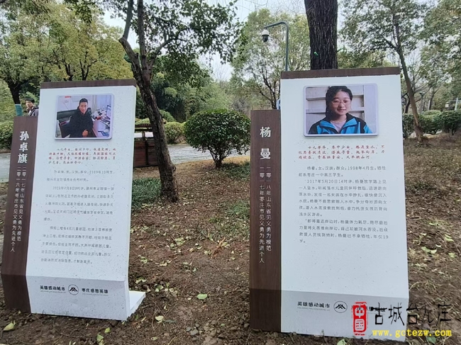 公园内,一个个平凡英雄的事迹感人至深、催人奋进。90后青年吕大陆,面对汹涌积水,咬紧牙关奋力将人推上岸,用果敢行动诠释青春担当;刘近春在田埂边勇救落水儿童,默默守护生命,彰显质朴善良;20岁的孙卓旗、杨曼、张先鸽、绳明良等人,在危难时刻挺身而出、急救众生,以热血守护平安;张士强等与见义勇为英模的事迹,更与台儿庄的红色血脉交相辉映,定格成永不磨灭的精神丰碑。