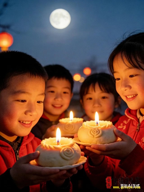 等到念完了,我才端着灯跑出去。月光底下,几个小伙伴捧着各自的面灯聚在一起,比谁的灯亮,比谁的灯好看。光线虽然微弱,却把每张小脸都映得红扑扑的。等到油尽灯灭,才依依不舍地回家去。
