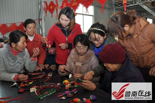 涧头集镇在台儿庄区人大代表张怀志等建议下,借助第二届中国非物质文化遗产博览会山东省枣庄市台儿庄古城举办的良机,广泛开展传统手工艺品的开发与来料加工,使手工艺品加工成为半农闲育龄妇女增收致富的主导产业,“不出村,不出院,不误接孩子放学与做饭,一天能赚几十元。”成为当地农民的顺口溜。那鲜艳的布艺产品、火红的中国结、亮丽的珠宝镶玉饰品,已远销10多个国家与地区,今年全镇赚回手工费3900余万元。(张涛)