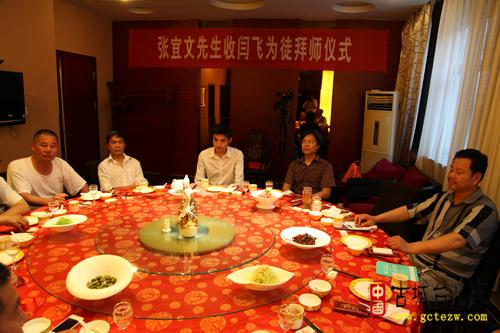 拜师仪式上,闫飞为老师张宜文先生敬茶,赠送砚台一方。张宜文先生回赠闫飞《张宜文书法作品集》一本和书法作品两幅,并勉励学生一定要刻苦用功,多学多练,认真做人,力争做一个德艺双馨的书家。