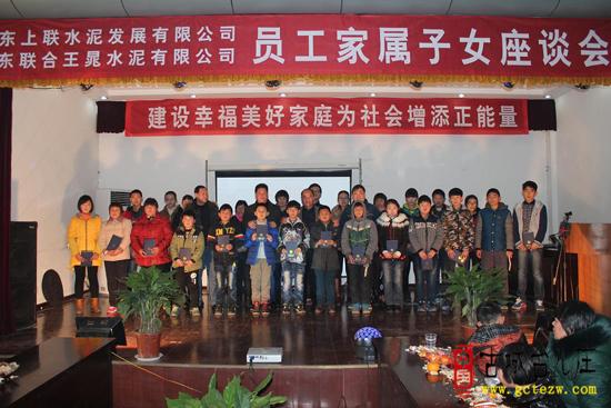 元月11日,山东上联水泥发展有限公司与山东联合王晁水泥有限公司共同召开“建设幸福美好家庭为社会增添正能量”为主题的员工家属子女座谈会,180多名员工代表、家属及其子女欢聚一堂,畅谈美好生活,表演文艺节目,总经理黄五湖给34名品学兼优的在校员工子女每人发放200元的奖励和学习用品。(黄振)